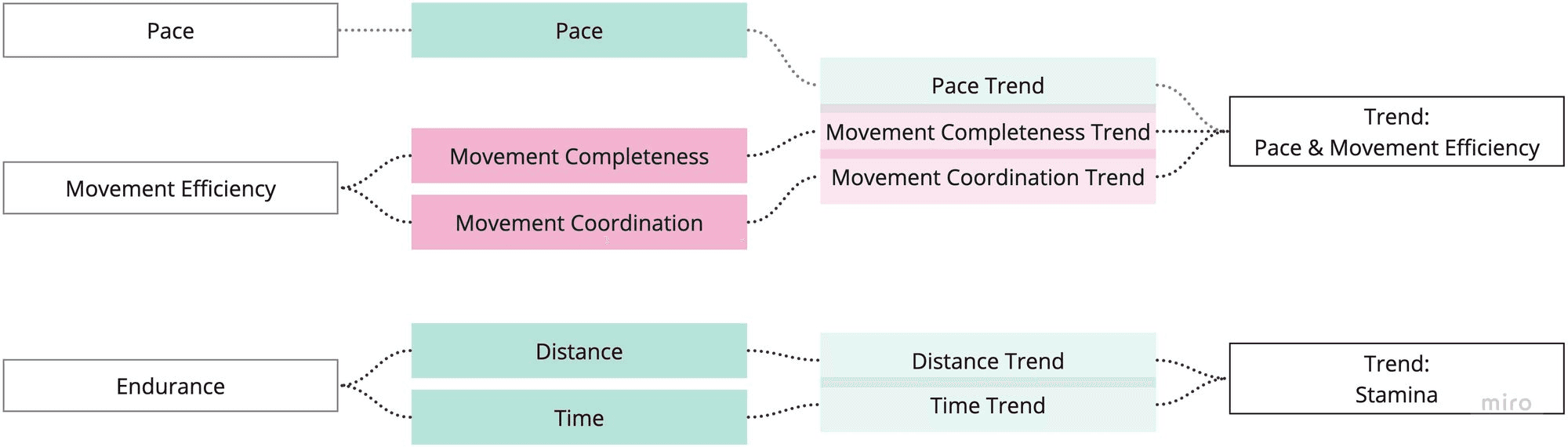 This distinction helps convey the simplicity and directness of Time and Distance while also highlighting the more complex nature of Pace and Movement Completeness. It can create a visually engaging and informative experience for the user.