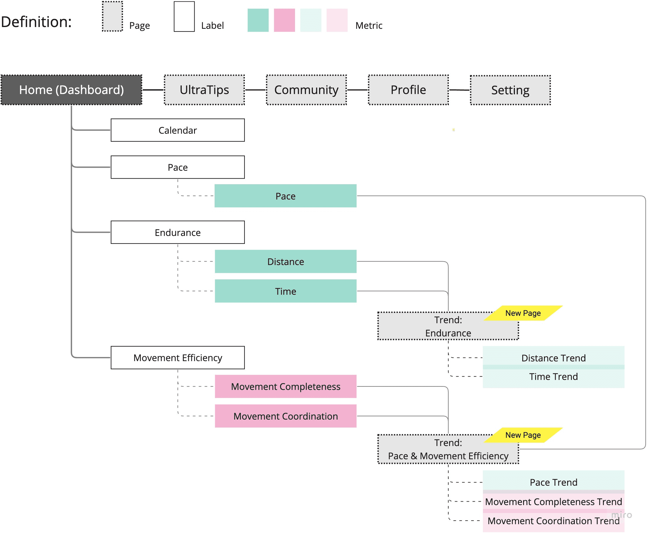 To offer historical context and motivate continuous improvement, I expand the original metrics to trend metrics and group them based on their effects on each other, which allows users to track their progress over time and see the correlation.