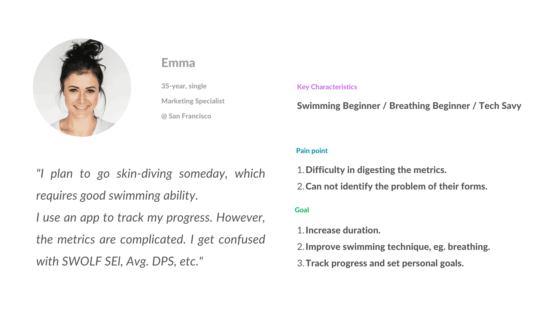 To better understand the target audience's swimming experiences and needs, I interviewed four target audiences to gain insight:
