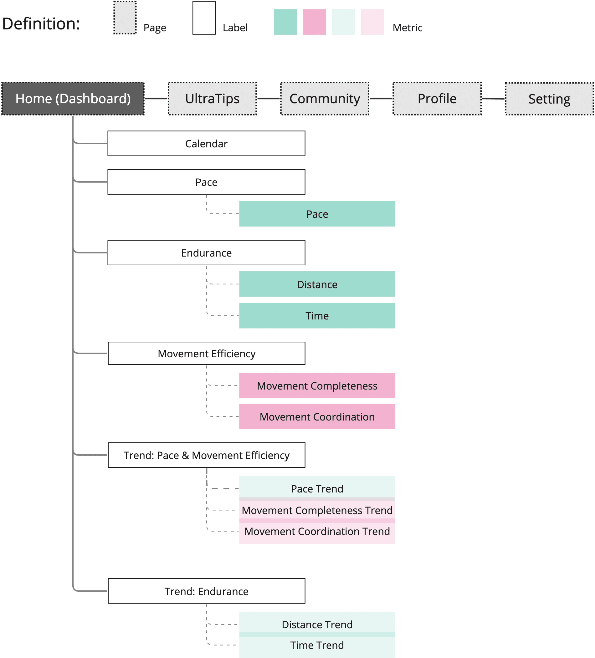 To create straightforward and easy navigation, I use information architecture to help with the page and interface structure, taking the project vision, to build an AI-powered dashboard for the Swimming Technique Improvement App, to consideration to ensure a holistic experience.