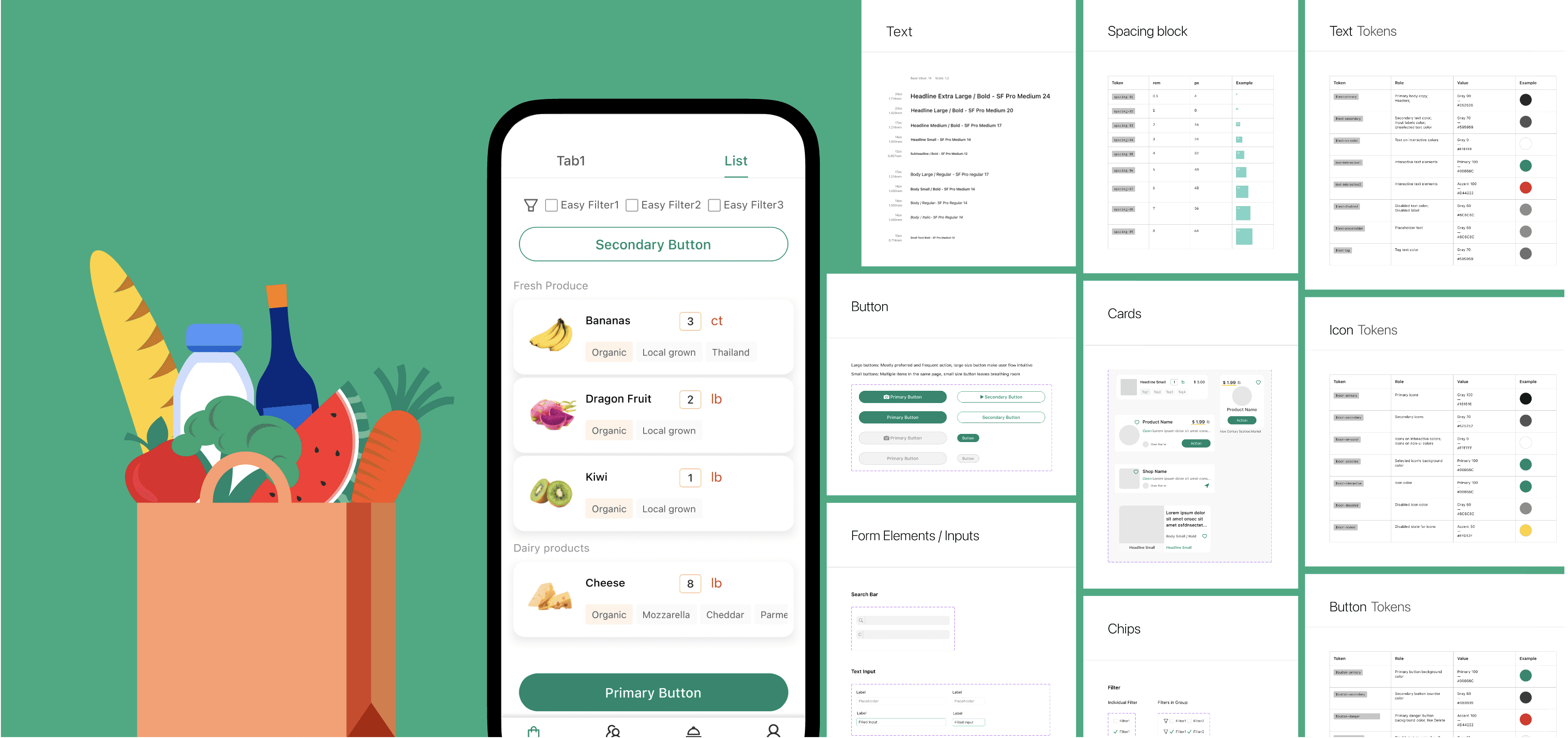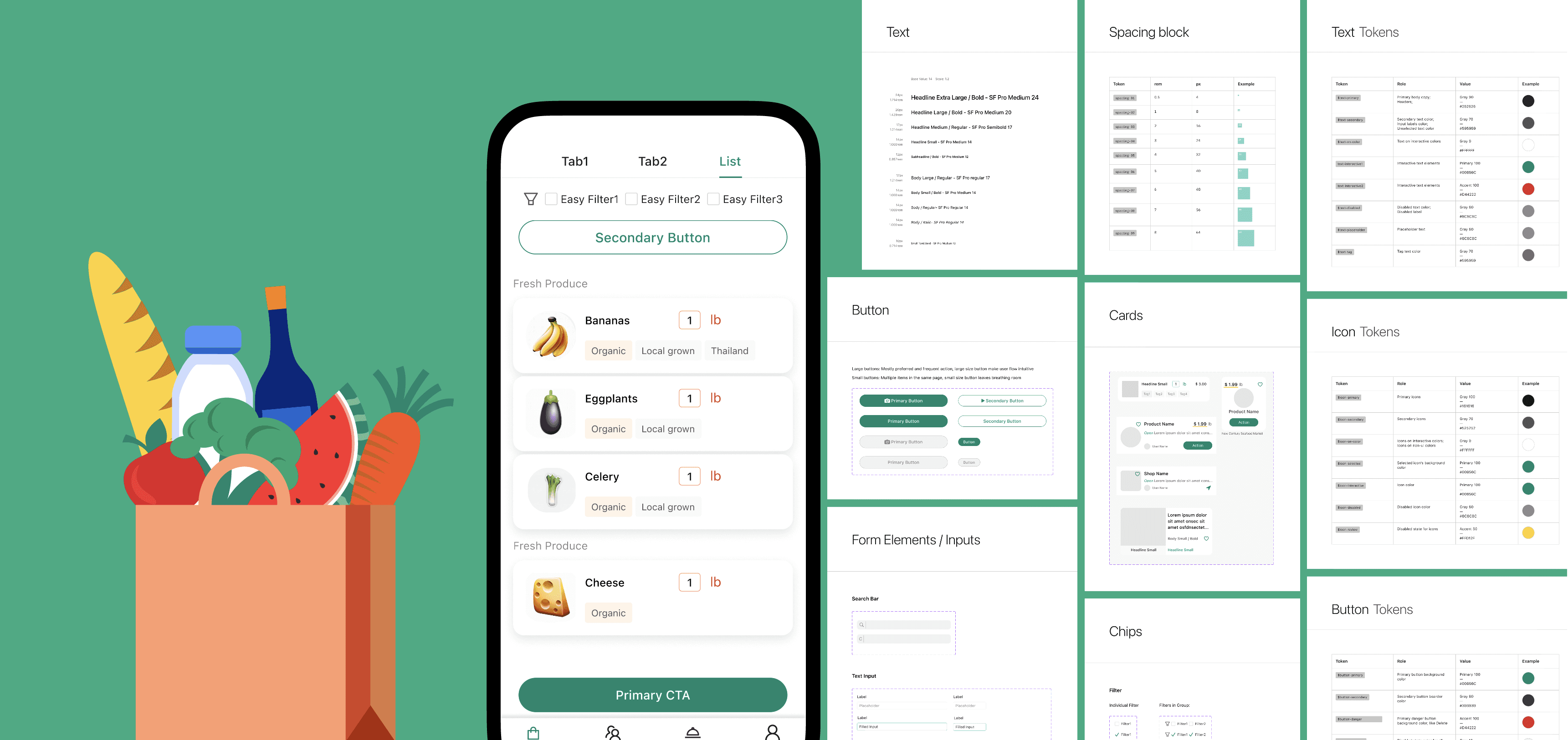 With a new grocery shopping app in development, there was a need for a design system to guide its visual and interactive aspects.