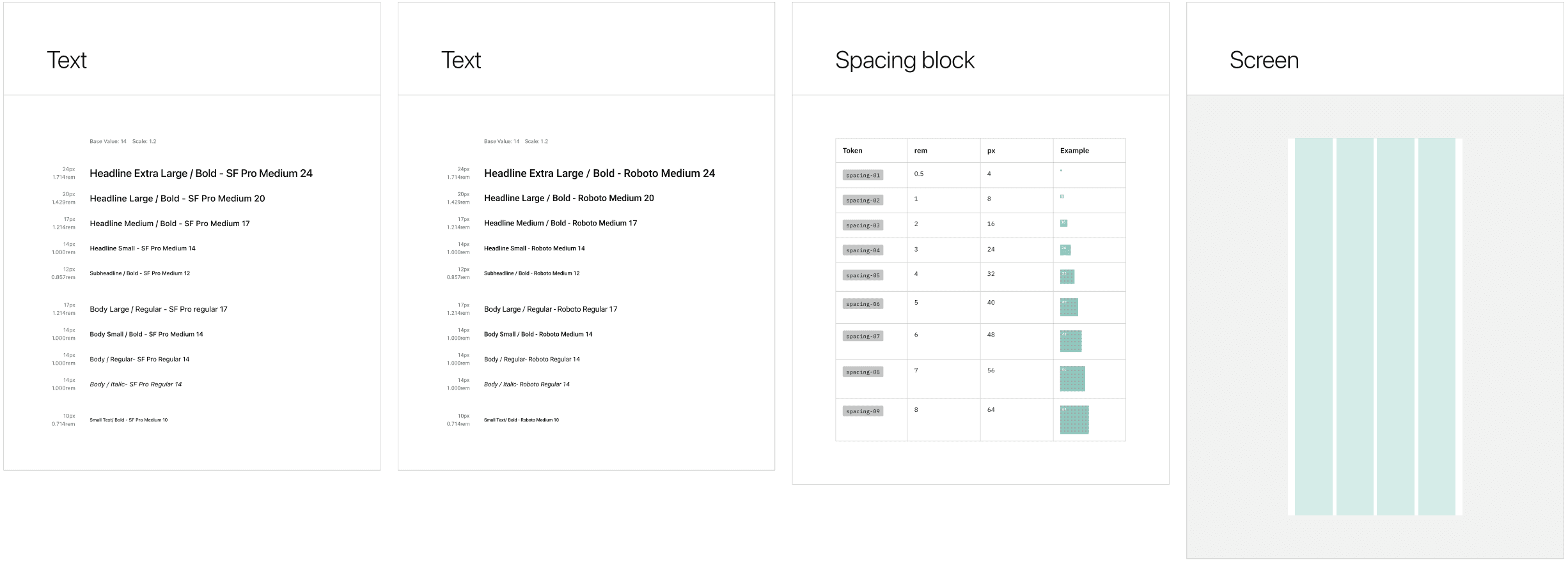 • Range from 4px (0.5 rem) to 64px